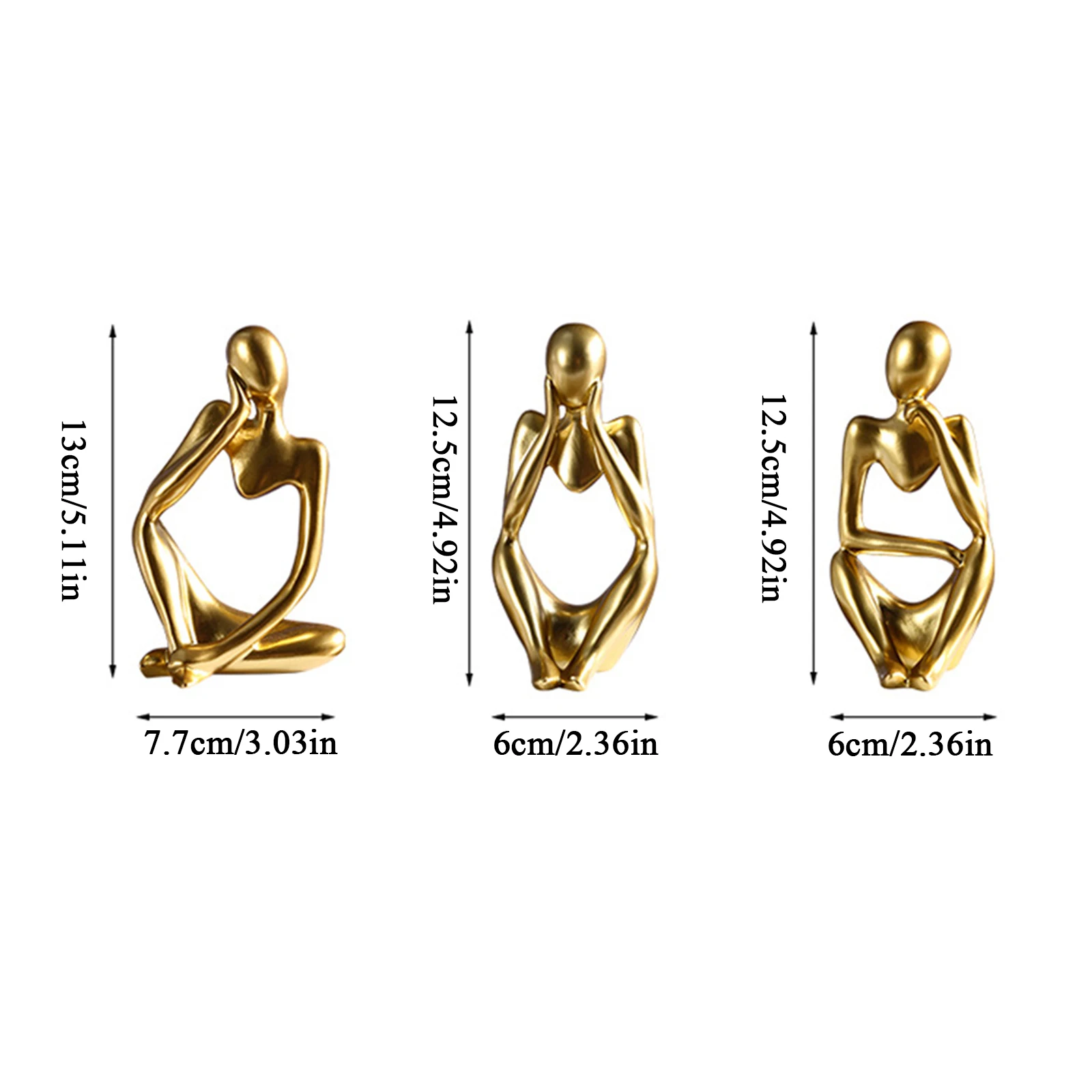 SMALL Set of 3Pcs Thinker Statue Sculpture Collectible Desktop Ornaments Home Decor Office Study Shelf Mini Abstract Modern